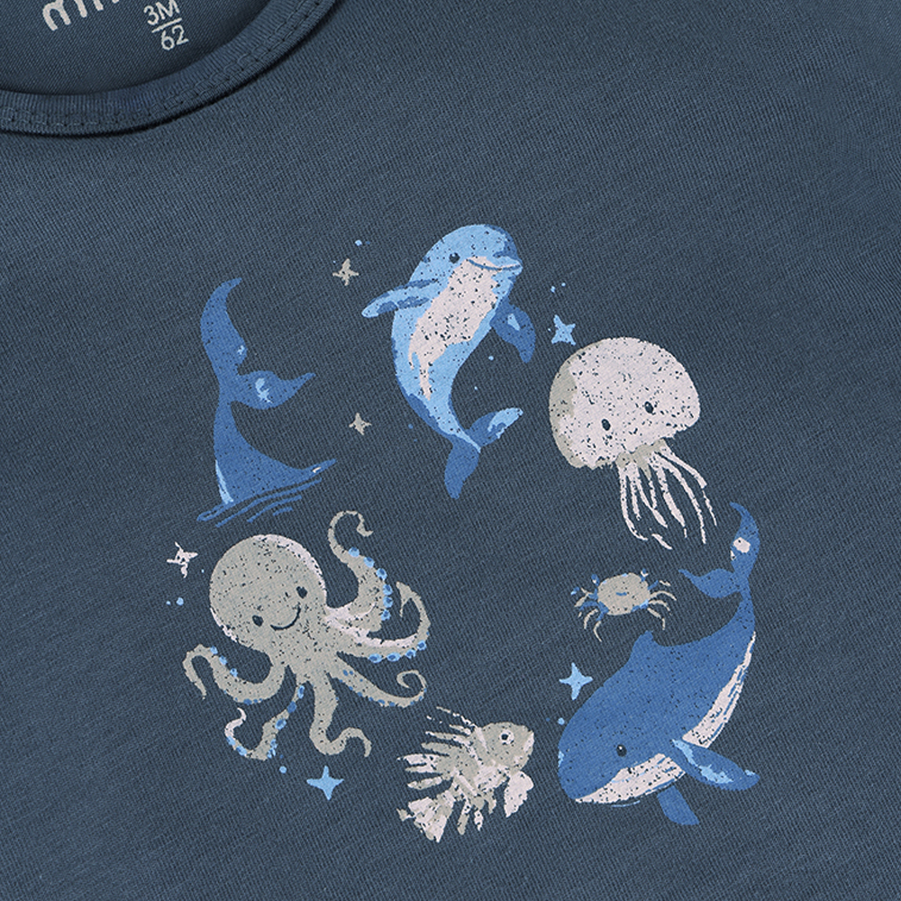 Minymo 短袖上衣,素色設計搭配胸前印花圖案,簡約又可愛。