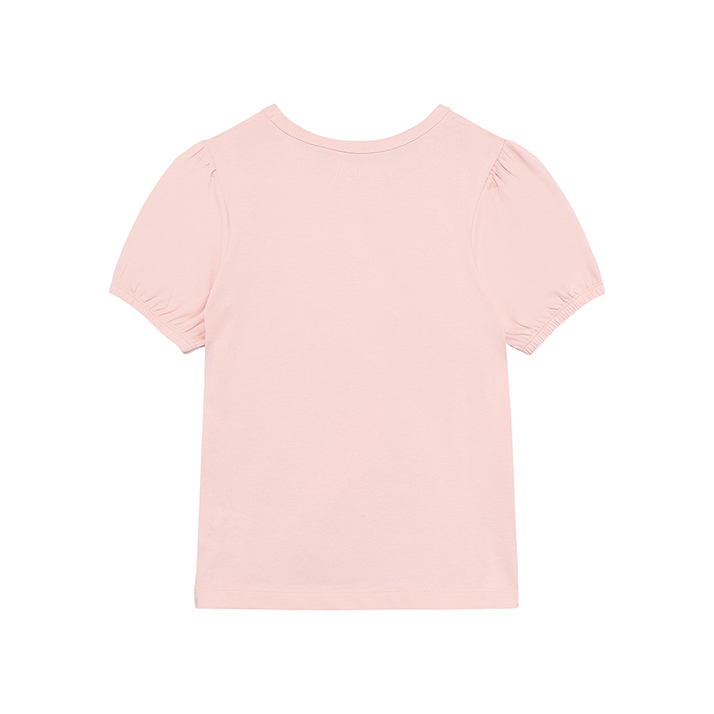 Minymo 短袖上衣,肩部帶有微泡泡袖設計,袖口鬆緊收口,搭配胸前印花與圓領,展現甜美俏皮感。