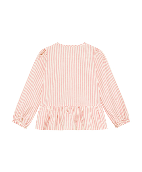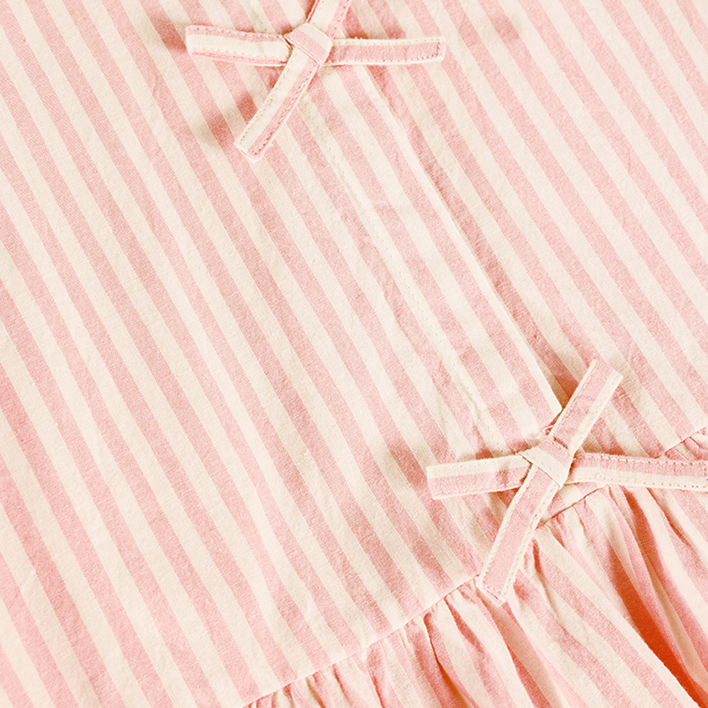 蝴蝶結粉白條紋長袖襯衫86cm