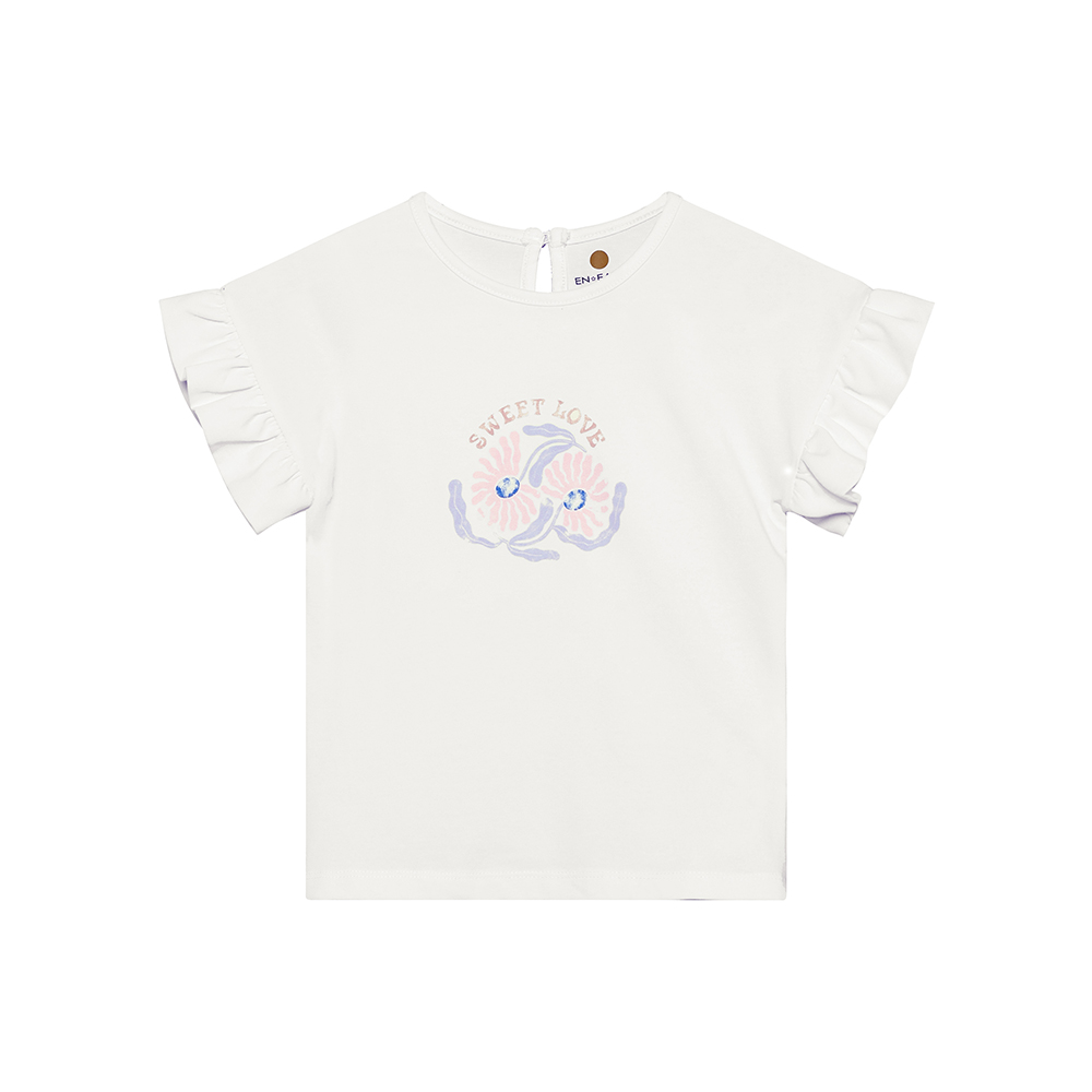 EN FANT 短袖上衣,袖口荷葉邊設計,胸前印花圖案,甜美可愛又俏皮。