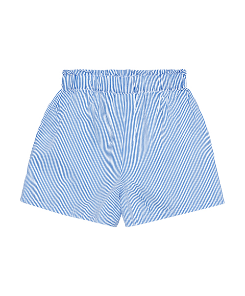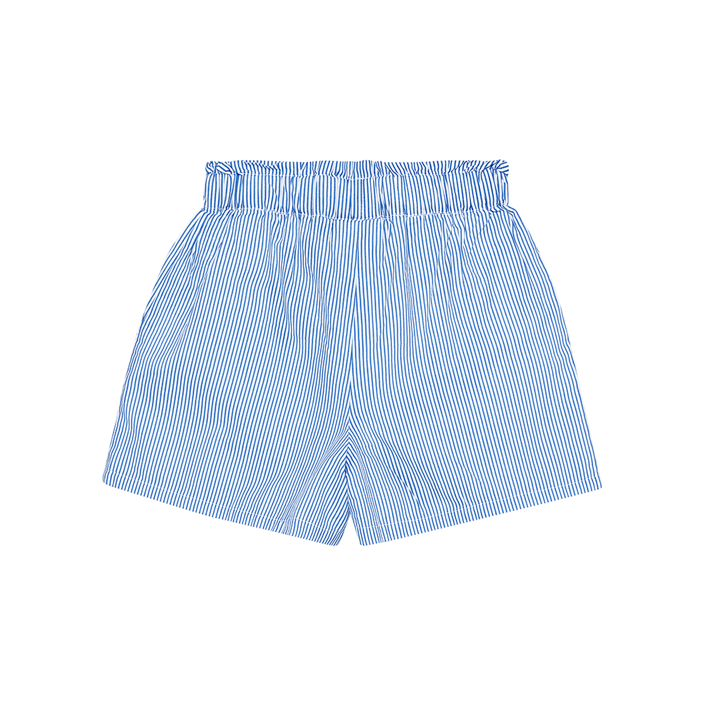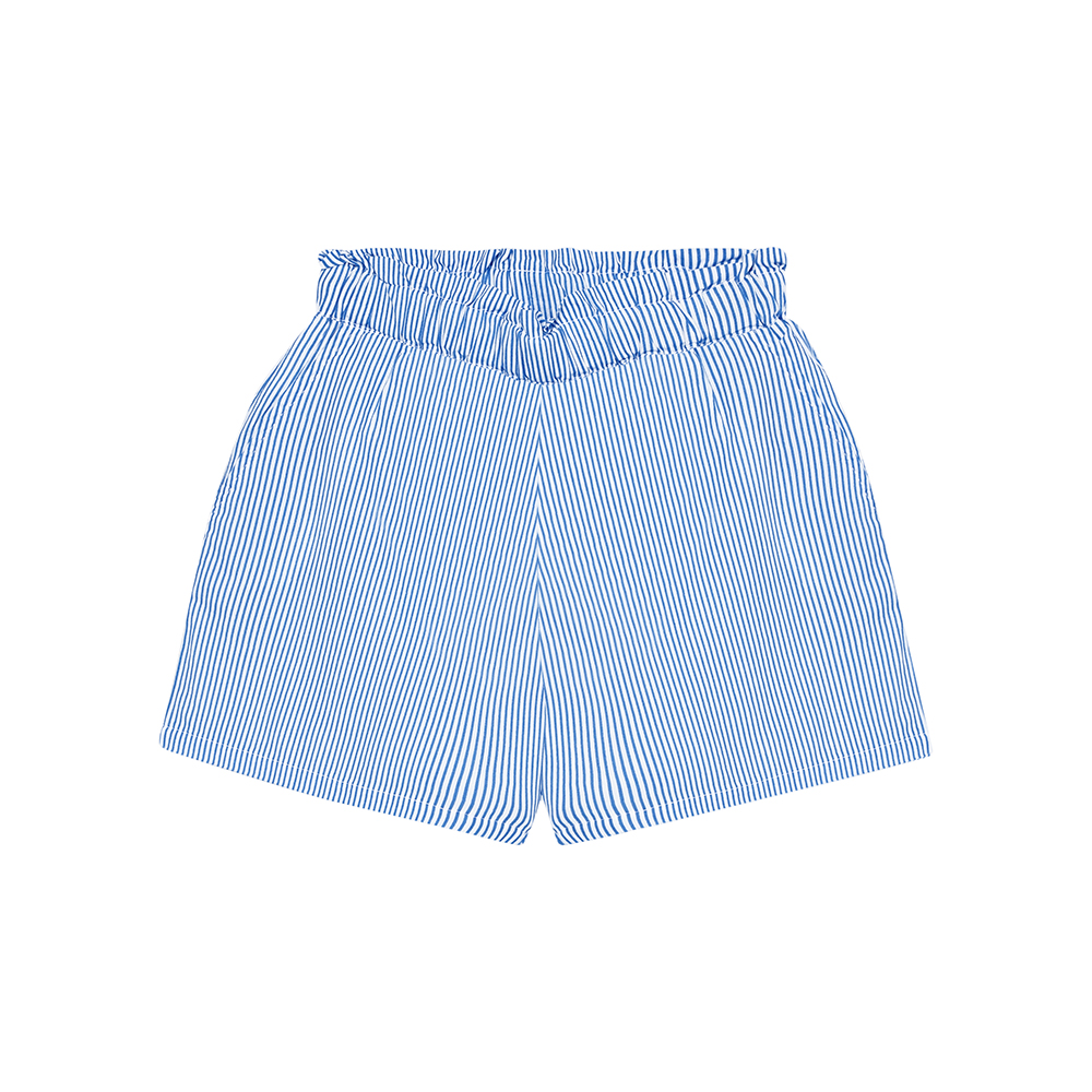 EN FANT 條紋短褲,腰部彈性鬆緊帶搭配荷葉邊設計,前方設有口袋,增添甜美可愛感。