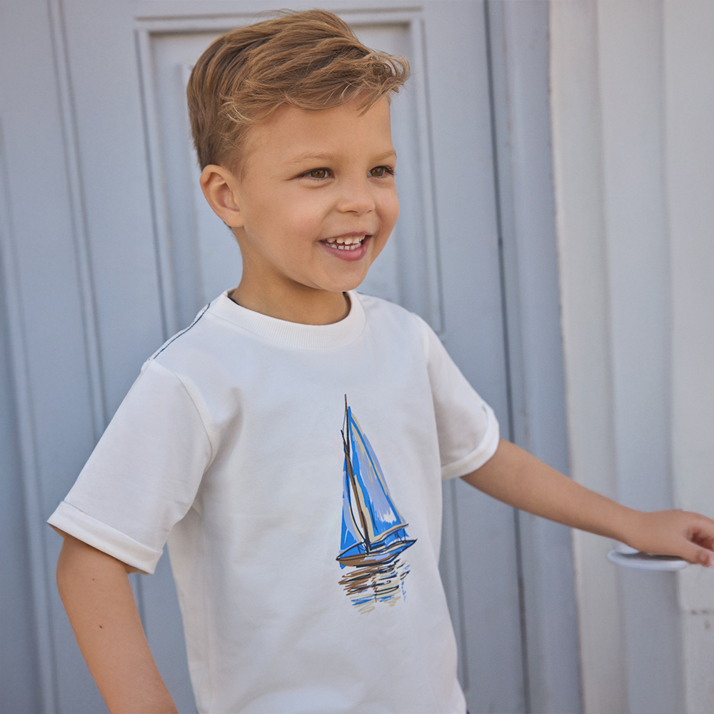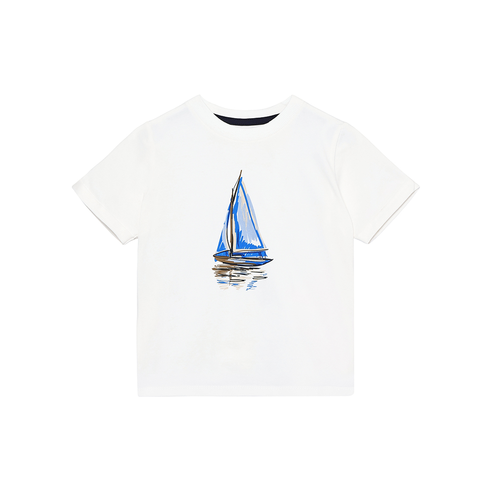 EN FANT 短袖上衣,胸前帆船圖案印花,增添童趣感。袖口採反摺設計,細節俐落有型。
