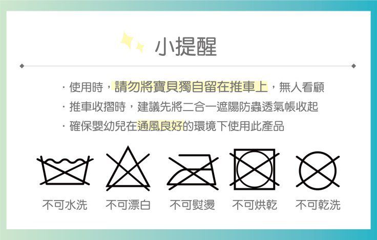 1. 使用時請勿將孩童獨自留在推車上,無人看顧