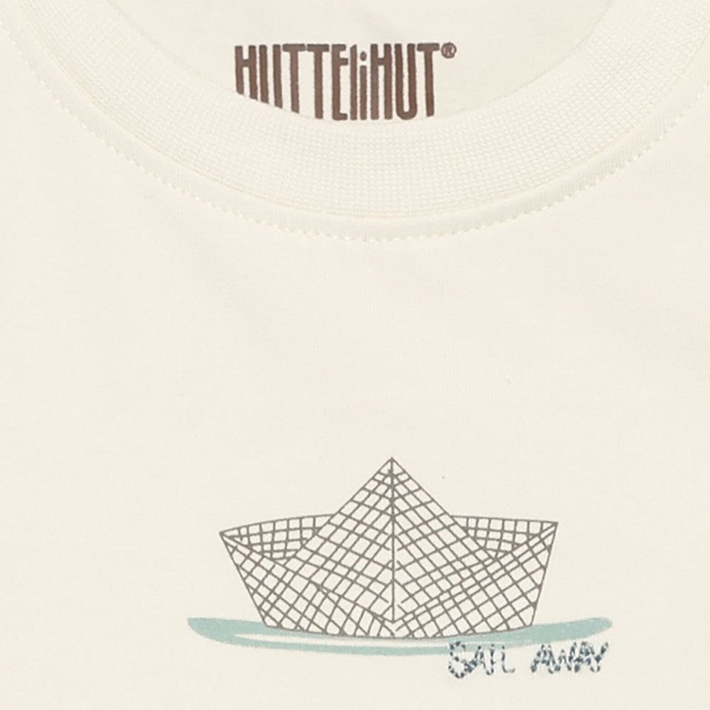 HUTTEliHUT 短袖上衣,採素色設計,胸前中心印花,增添俏皮可愛感。親膚舒適。領口羅紋設計,細節精緻,穿著自在。