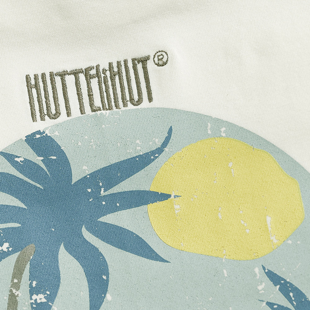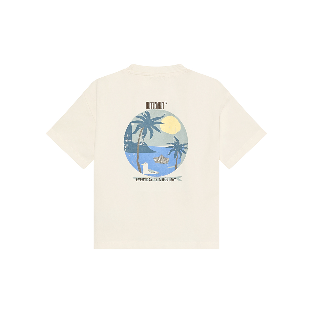 HUTTEliHUT 短袖上衣,採素色設計,胸前口袋細節,背面搭配大型印花,增添趣味與層次感。