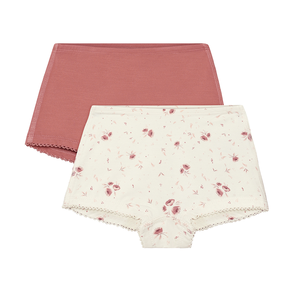 舒適兩件組女用四角內褲,採用竹纖維材質製成,親膚柔軟,帶來自在無負擔的穿著感。腰部鬆緊帶設計貼合不勒,褲腳點綴小巧蕾絲,增添可愛細節。