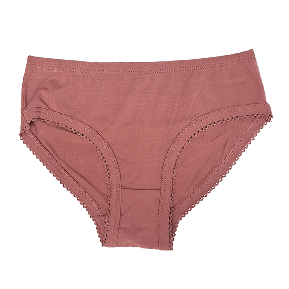 舒適兩件組女用三角內褲,採用竹纖維材質製成,親膚柔軟,帶來自在無負擔的穿著感。腰部鬆緊帶設計貼合不勒,褲腳點綴小巧蕾絲,增添可愛細節。