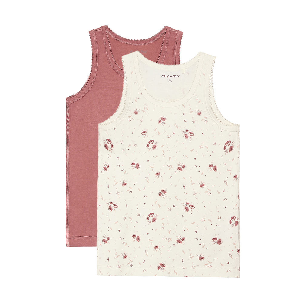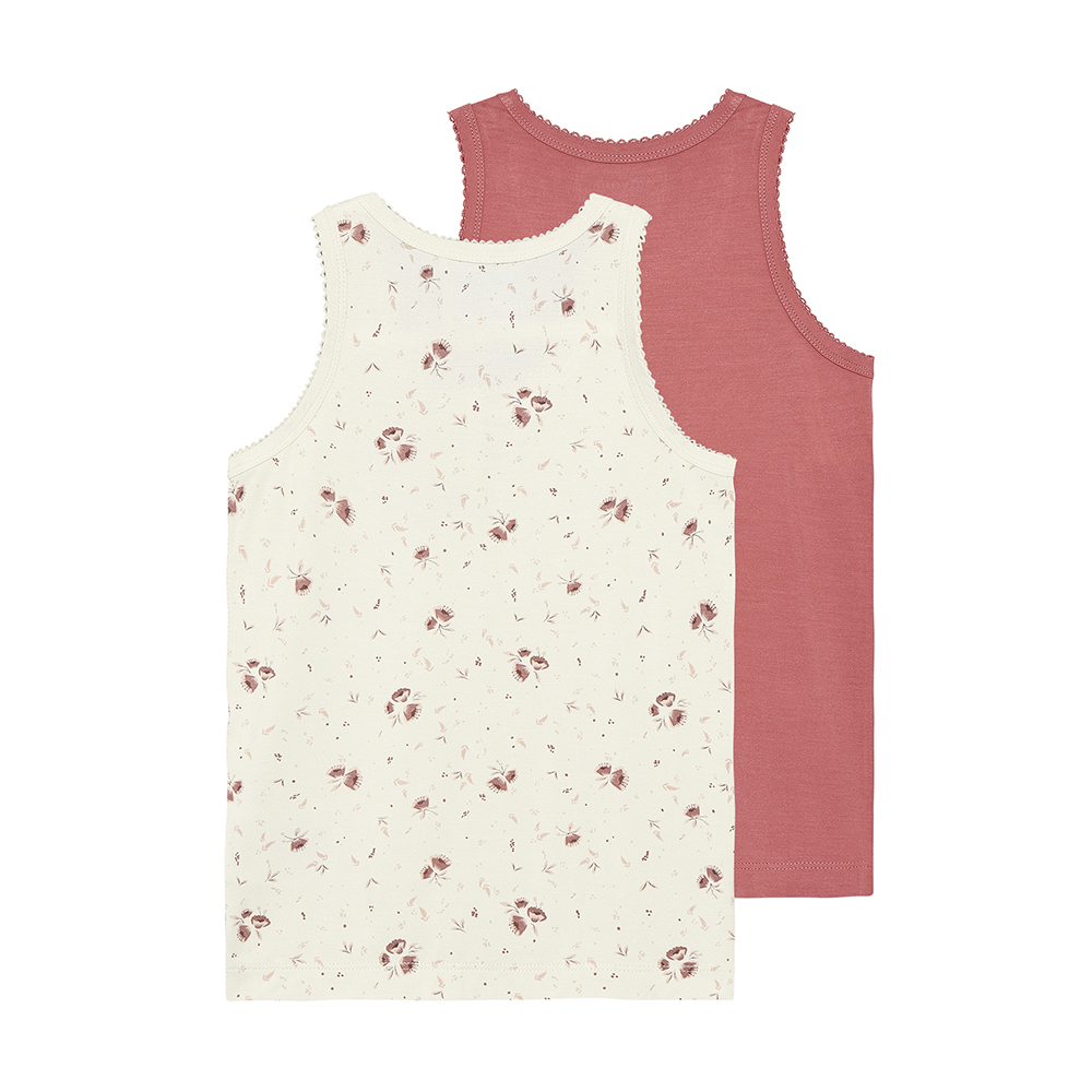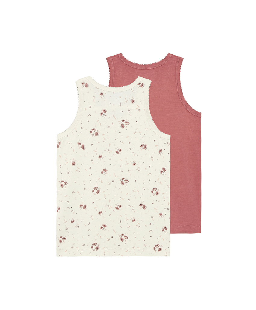 兩件組無袖上衣,採用柔軟竹纖維製成,提供不同風格設計的實用組合。一件為簡約素色款,另一件則為精緻滿版印花,輕鬆搭配各式日常穿搭。