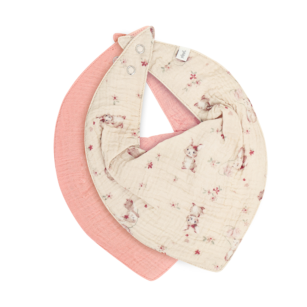 花朵兔兔紗布圍兜2件組
