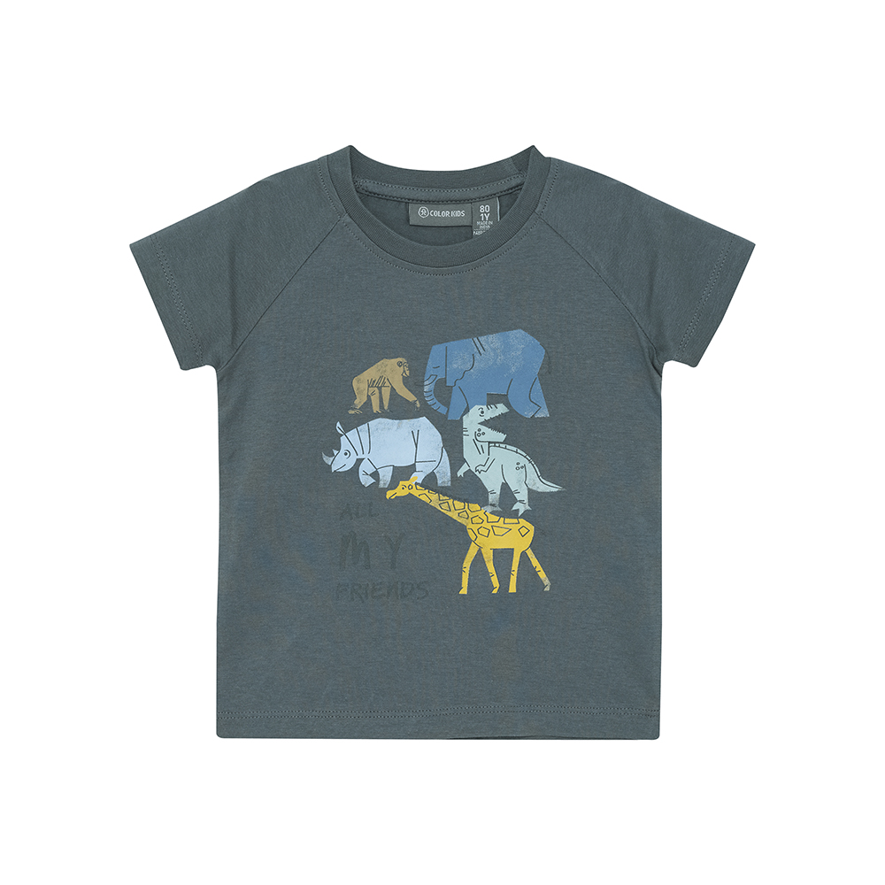 Color Kids 短袖上衣,採 100% 純棉材質,柔軟親膚,穿著舒適。胸前印花設計,增添俏皮可愛感。