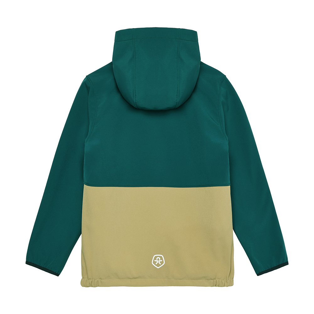 Color Kids 長袖刷毛防風外套,採用防風、防水、防污材質。外套配有固定帽兜與口袋,拉鍊末端設有下巴布片保護,增加穿著舒適度。設計加入反光細節,提升夜間安全性。水柱防水壓力 8,000 mm,透氣度 3,000 g/m²,適合孩子日常與戶外活動。