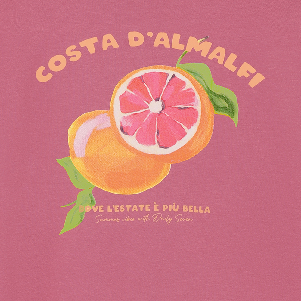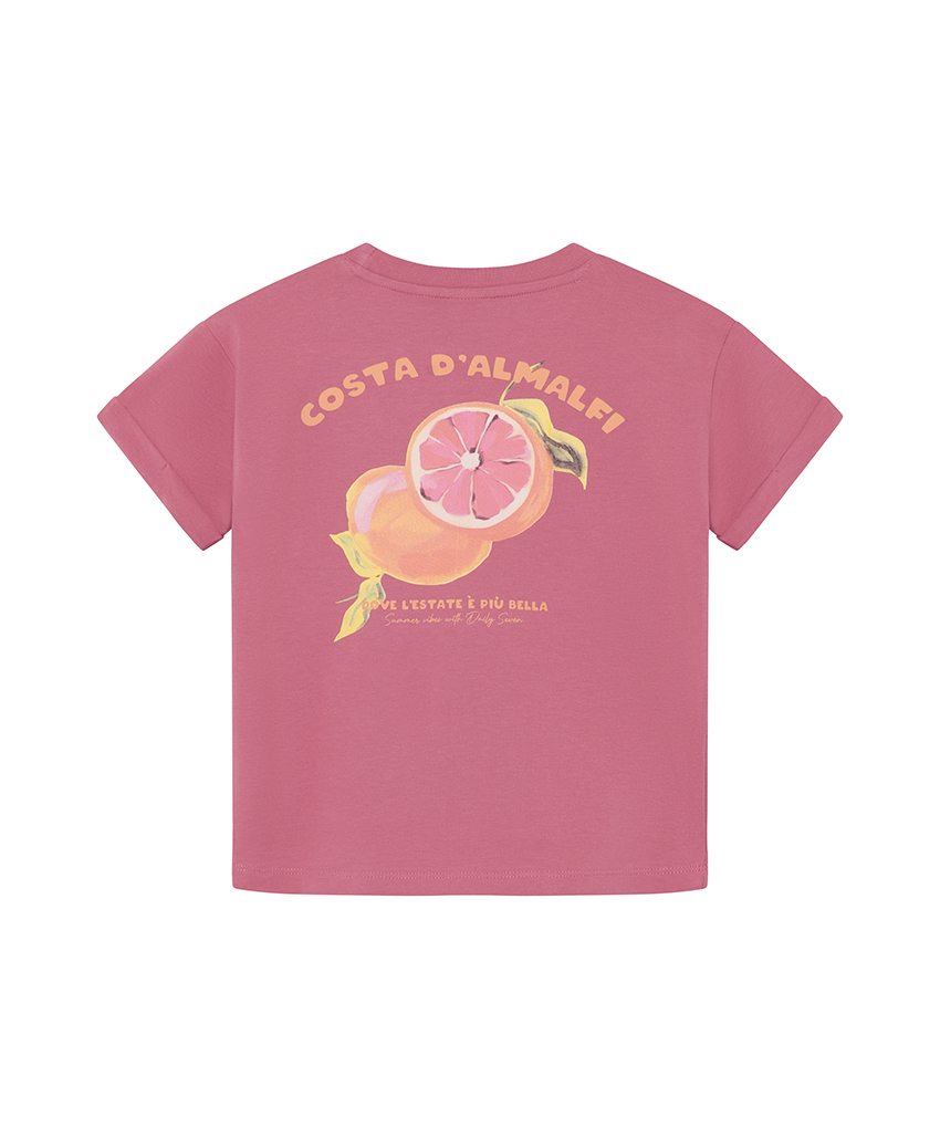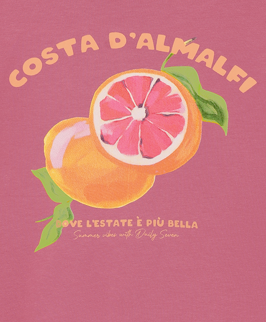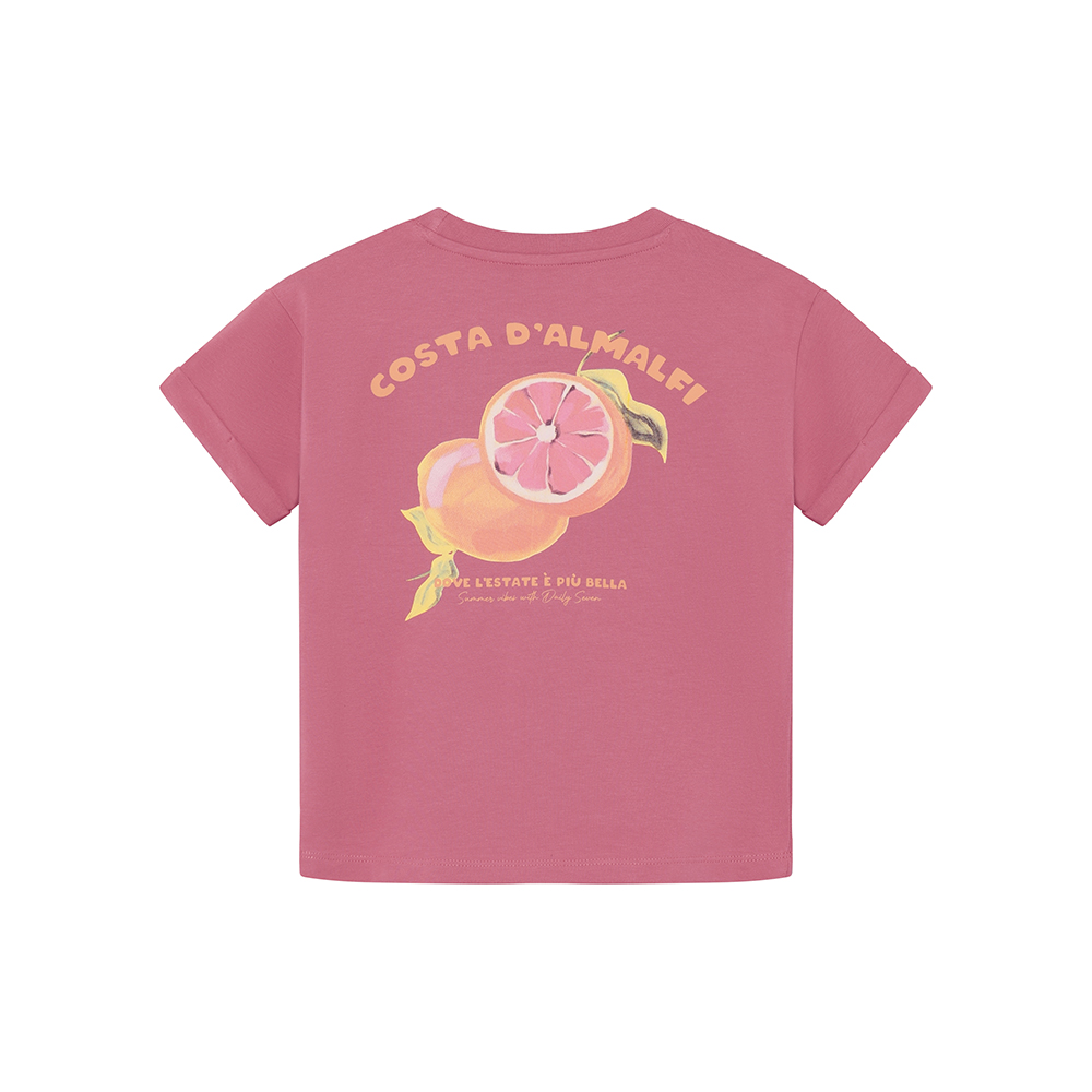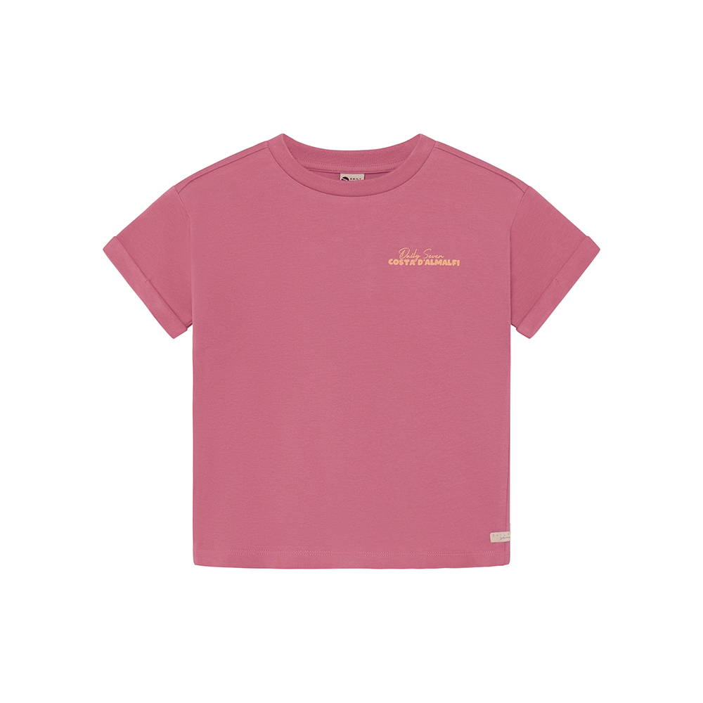 Daily Seven 短袖上衣,採素色設計,前後均搭配印花圖案,增添趣味與視覺層次。
