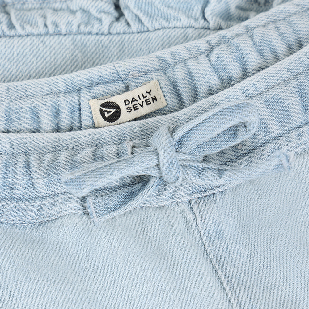 Daily Seven 牛仔短褲,採輕盈牛仔外觀材質,腰部可調節抽繩設計,方便調整貼合,正面設有實用口袋,選用 100% 棉質面料,柔軟親膚,適合寶寶日常穿搭與活動。