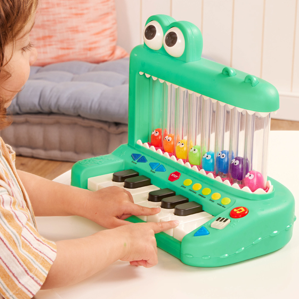 噴氣鱷魚張大嘴,球雀們來彈鋼琴!唱唱 Do Re Mi,敲敲木琴叮咚叮。開心的時候,啾啾啾也能說成一首歌!仔細聽,鱷魚的聲音藏在哪隻球雀肚子裡?
