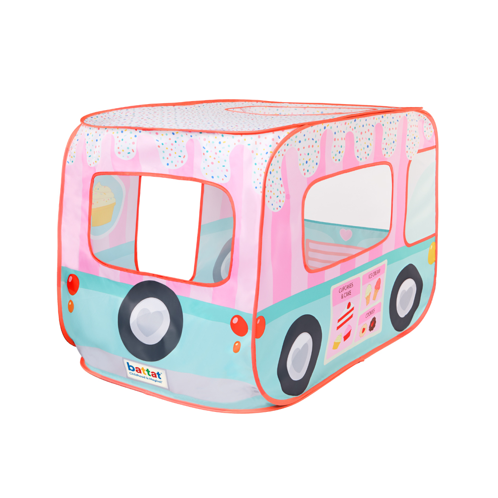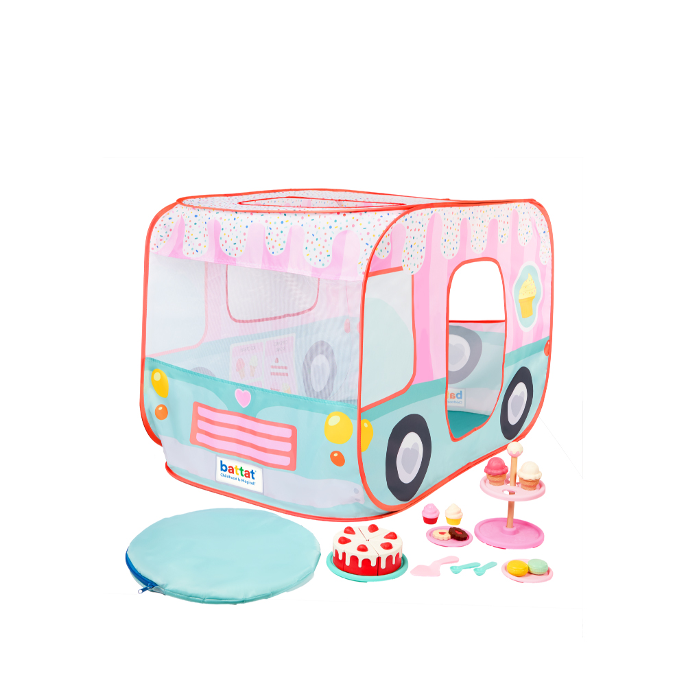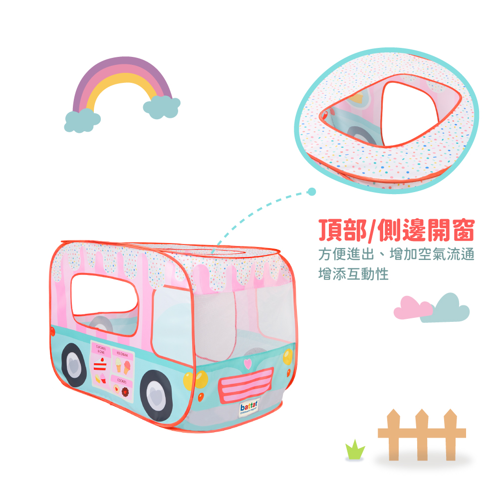甜點巴士遊戲帳篷附收納袋,輕鬆展開就是一間專屬孩子的甜點小天地。