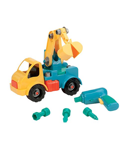 工程吊車共有34個組件,一具電動起子與3個起子頭,可以讓孩子選擇正確的起子頭將工程車完全拆解開來,可訓練小朋友的手眼協調與邏輯思考能力。