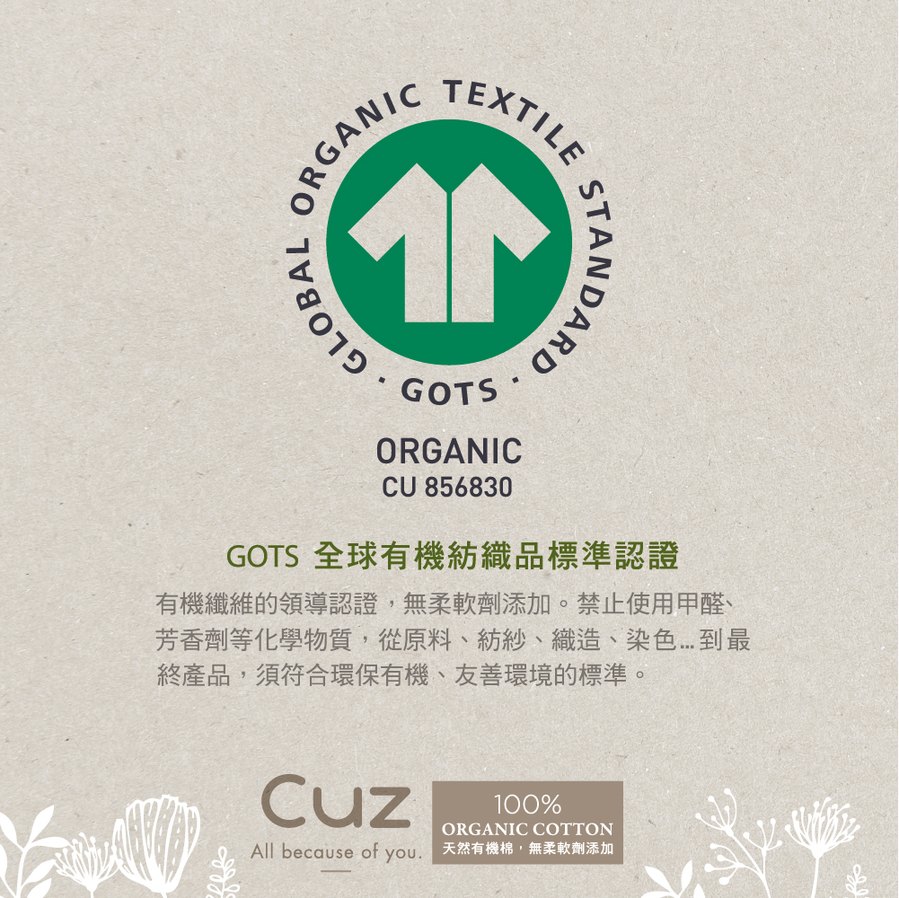 有機纖維的領導認證,無柔軟劑添加。禁止使用甲醛、芳香劑等