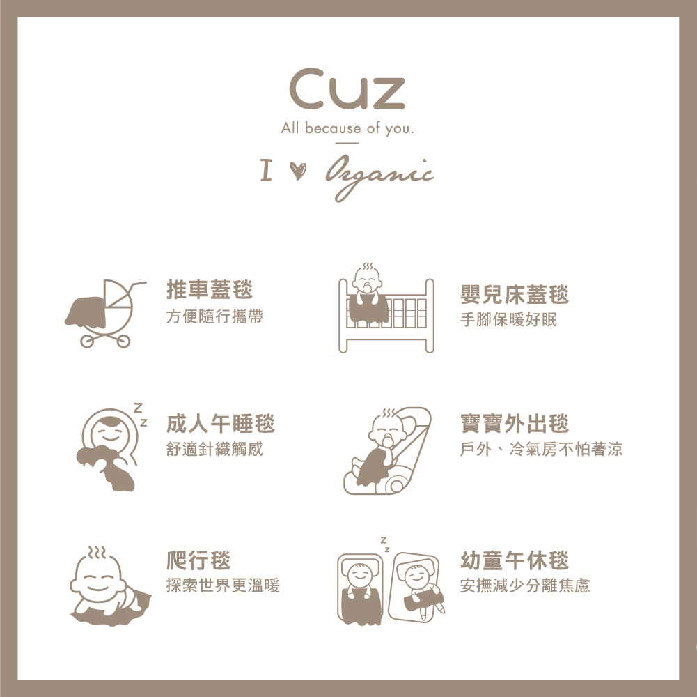 - 可當推車蓋毯、嬰兒床蓋毯、寶寶外出毯、午睡毯、爬行毯