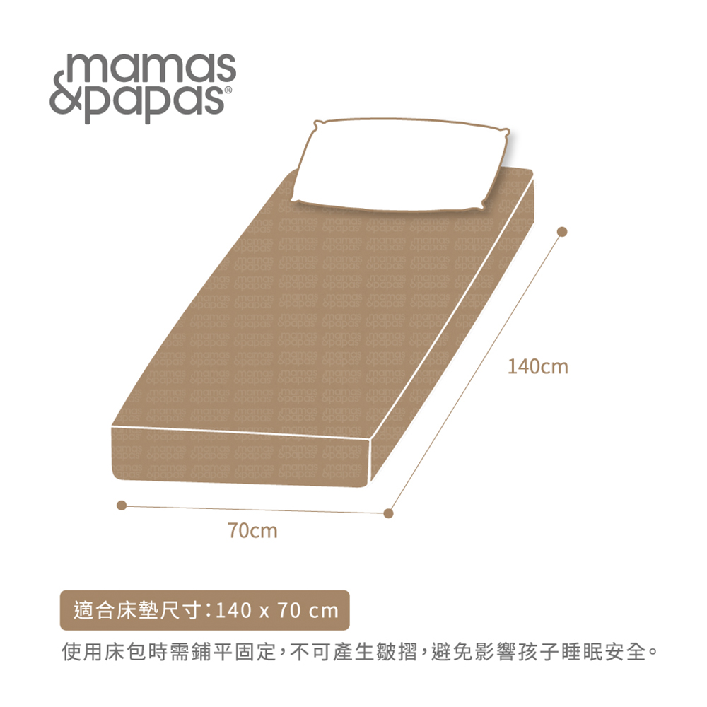 為避免幼童發生窒息意外,床包僅可使用於床墊,不可單獨使用,使用時須確實包覆床墊。
