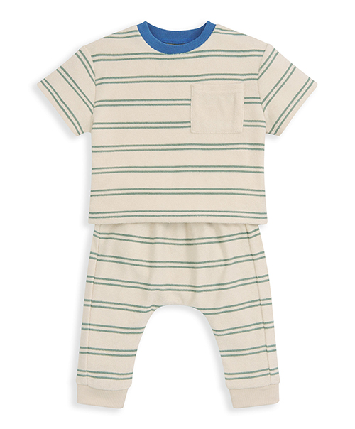 棕藍色條紋短袖套裝62cm