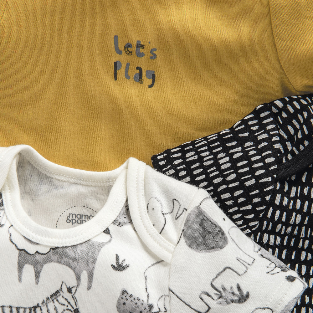 mamaspapas的包屁衣,摸起來材質很軟很舒服,顏色的設計也很日常,光看就很舒服,一包5見搭配活動很划算!