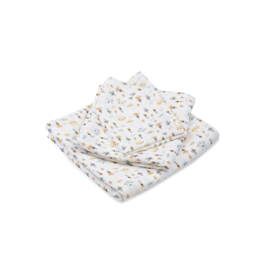 紗布巾觸感柔軟,很適合寶寶使用,可以當蓋被、安撫巾,寶寶出門保暖用,洗完也很蓬鬆,圖案富有童趣,十分推薦!