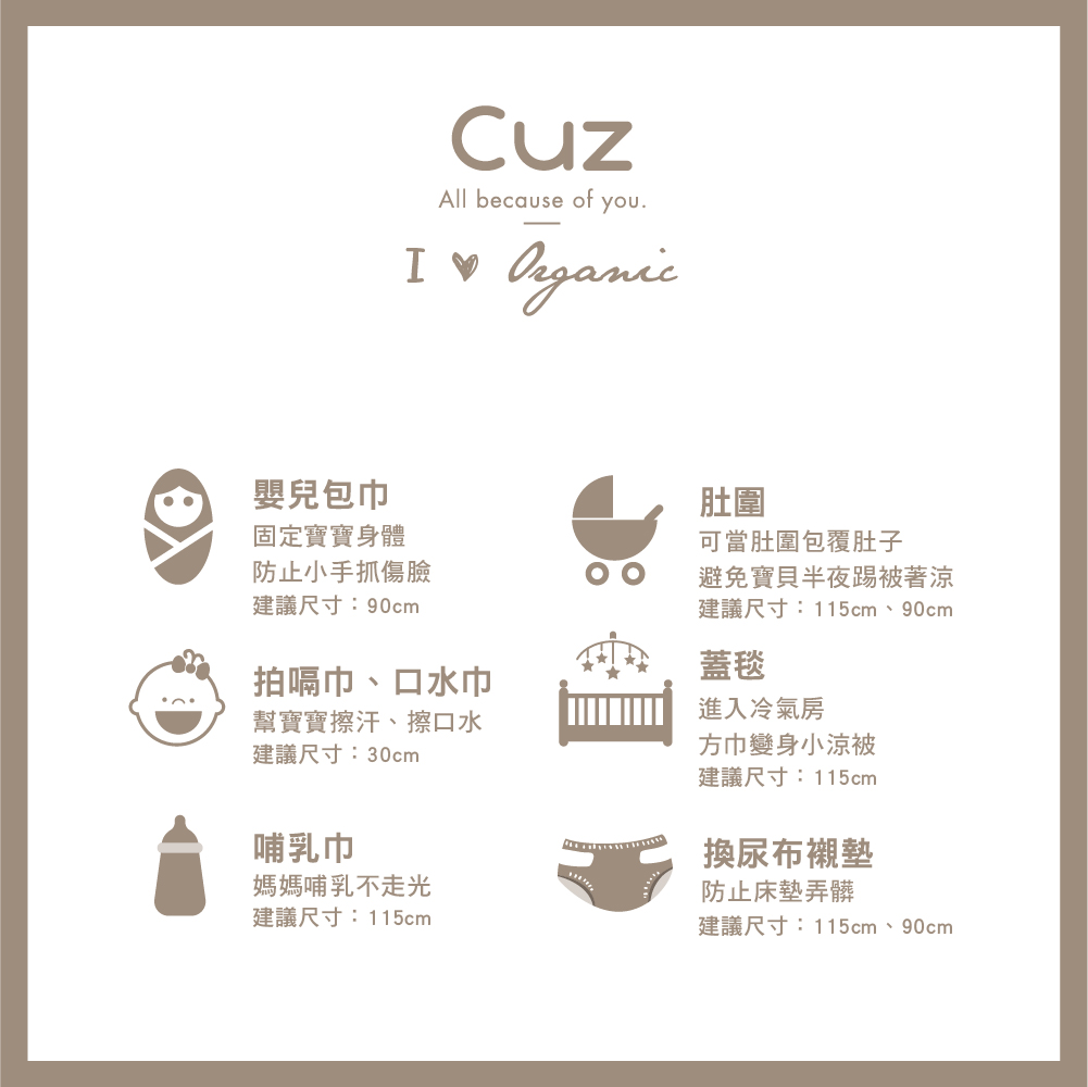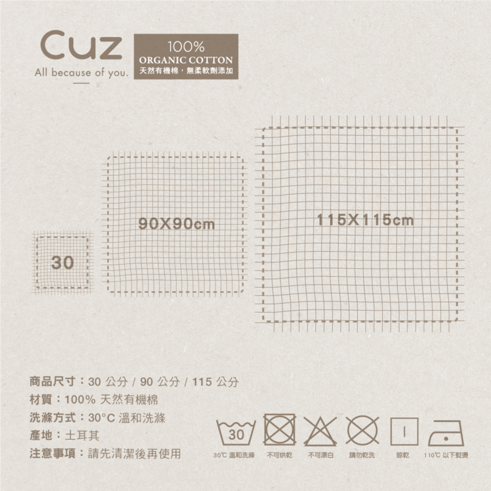 已經是第二次訂購CUZ的有機紗布巾, 孕期參加婦幼展買了一組, 對於舒服的觸感愛不釋手;
