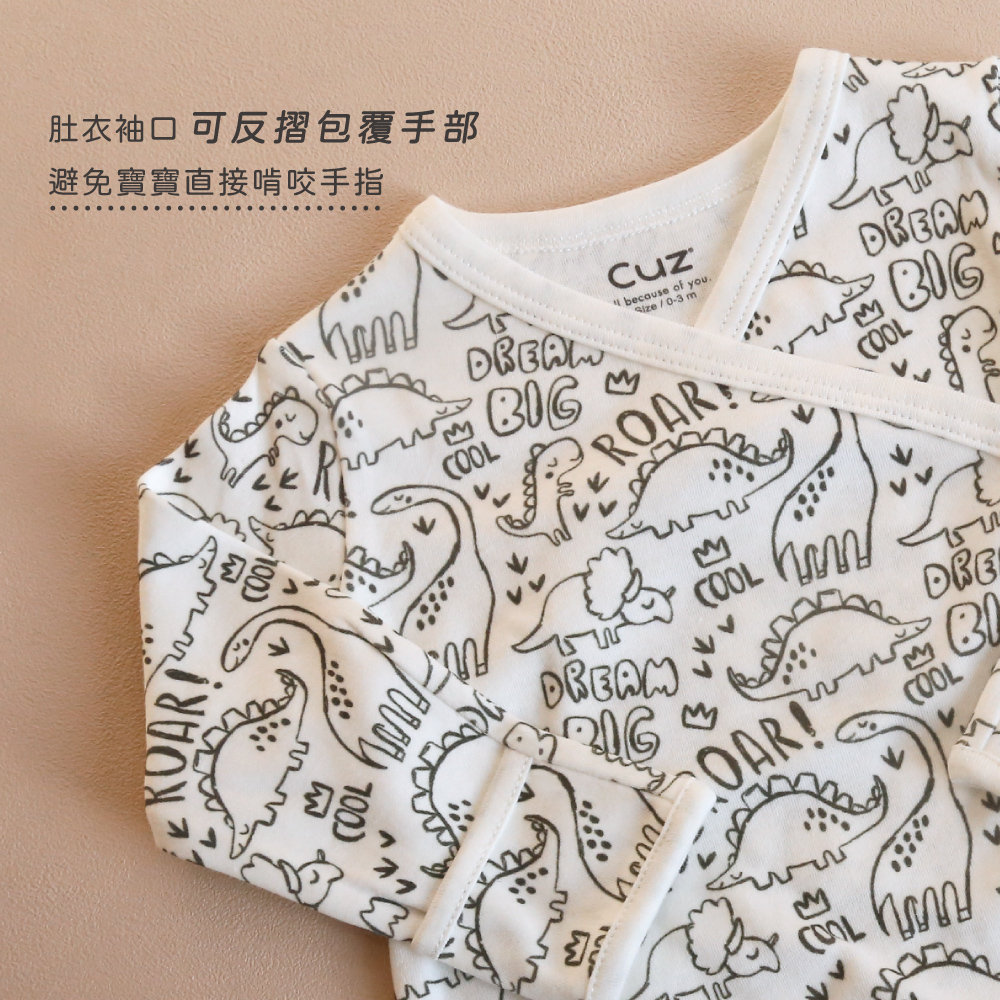 - 袖口可反摺包覆手部,避免寶寶直接啃咬手指