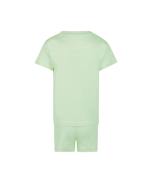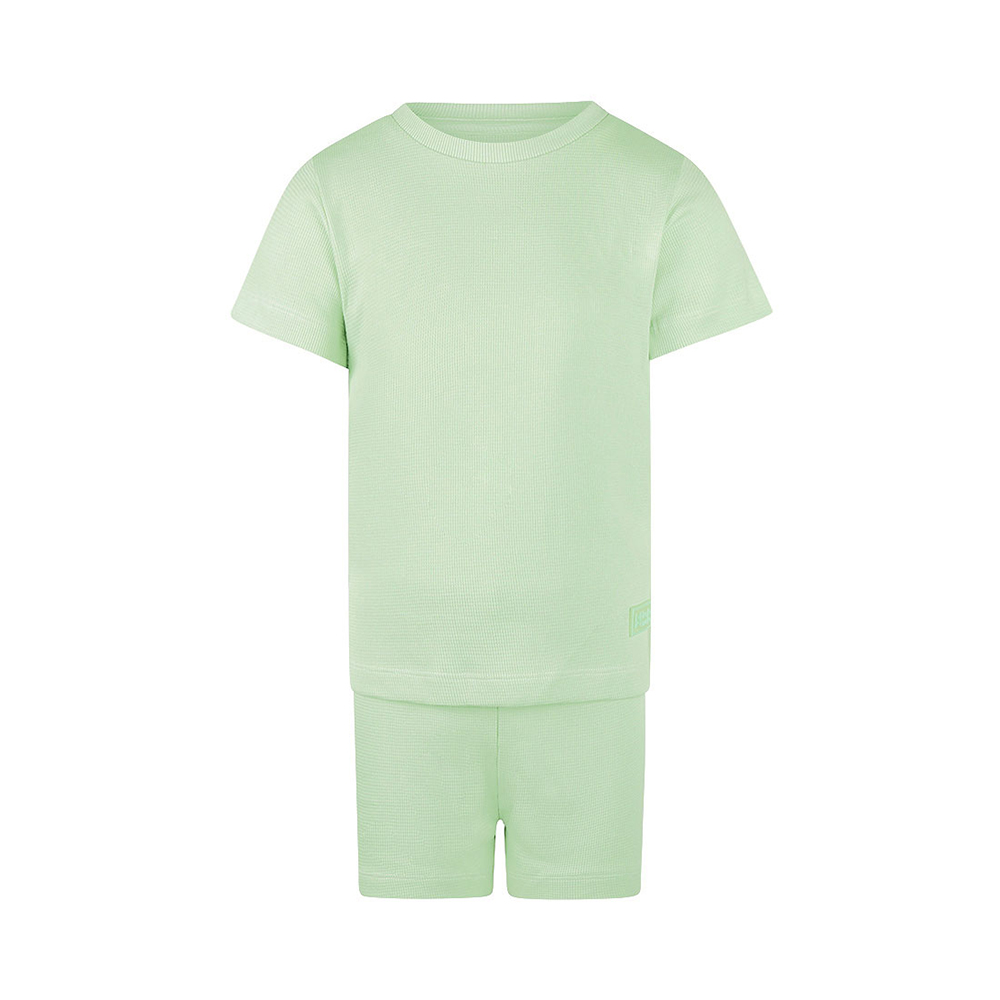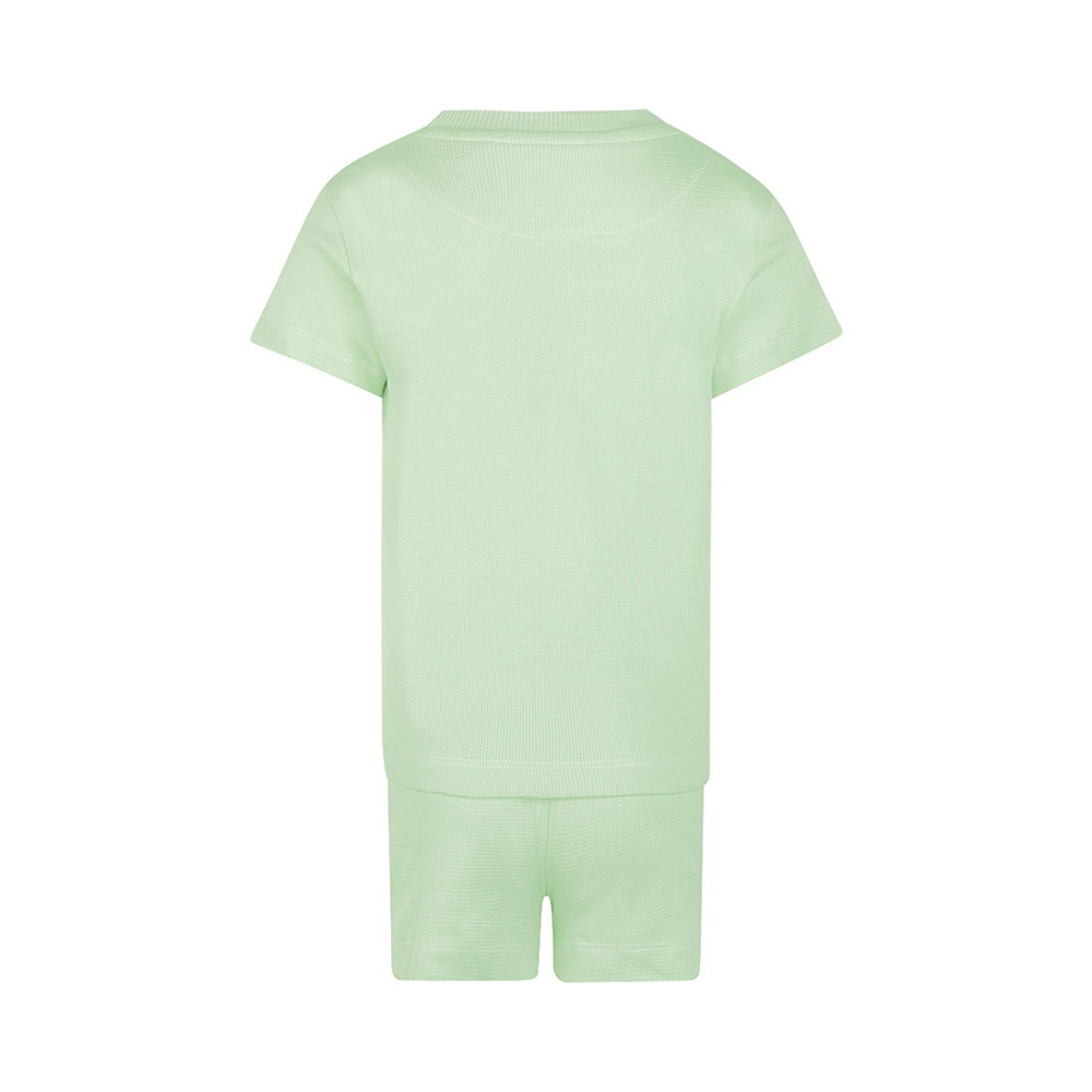 這款 Koko Noko 綠色短袖套裝,男女童皆適穿。套裝包含短袖上衣與同色短褲,採用柔軟華夫格紋棉製成,觸感親膚、透氣舒適,給孩子最自在的穿著體驗。