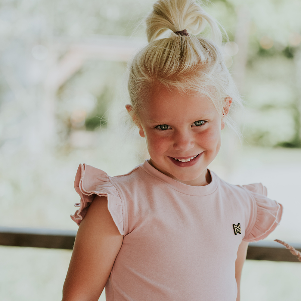 這款 Koko Noko 粉色荷葉邊短袖上衣,是陽光活潑日子的理想選擇,粉色調百搭又時尚。